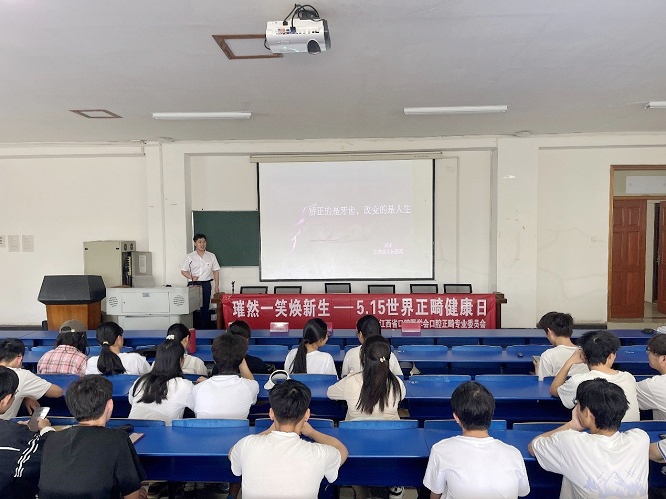 5月14日下午,在“世界正畸健康日”来临之际,江西省人民医院口腔科主任医师刘新庆教授一行五人来到我院,在博学楼三楼报告厅开展口腔义诊。此次活动的主题是“璀然一笑焕新生”,旨在提高大家对口腔健康的重视,普及口腔保健知识,养成良好的口腔卫生习惯。