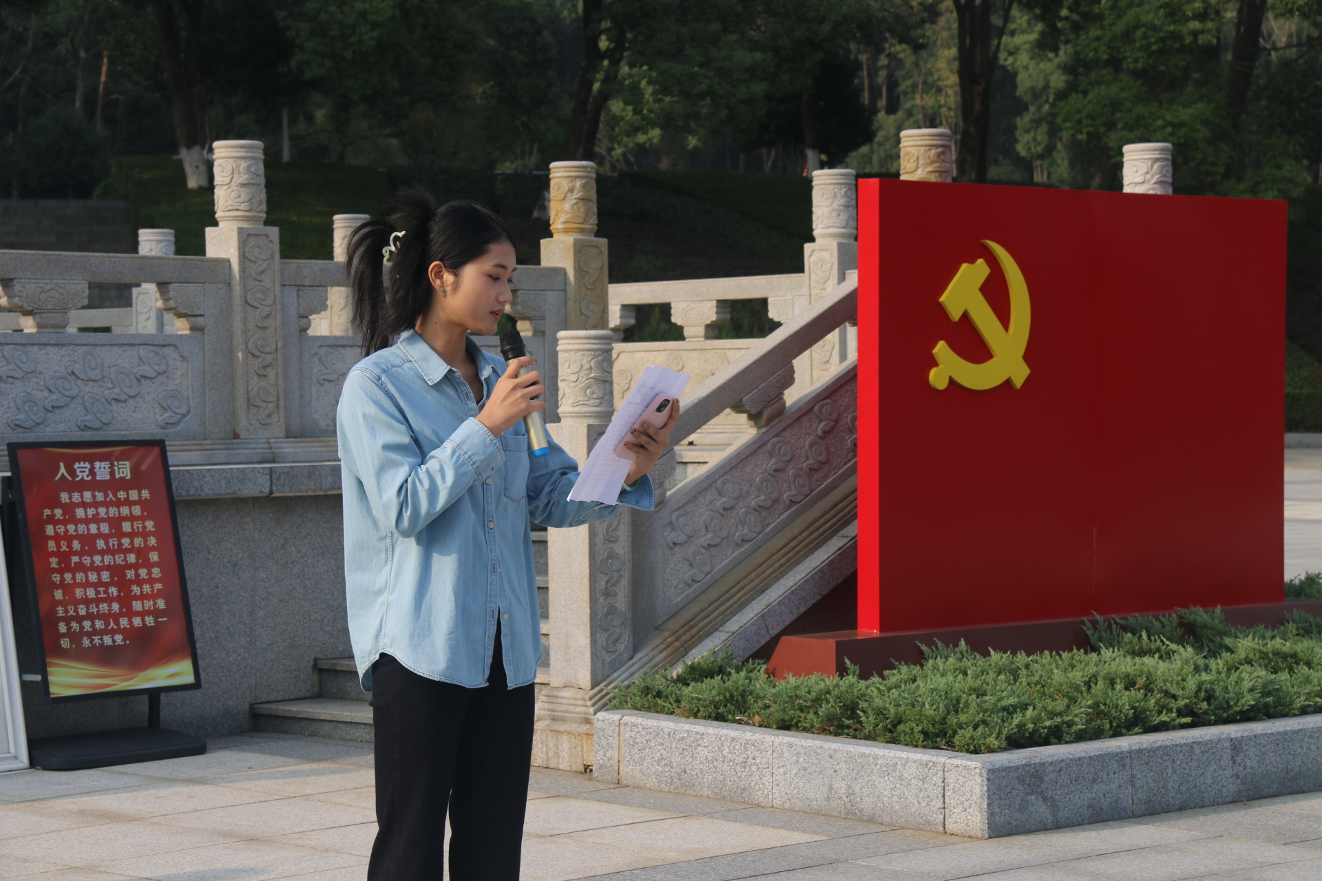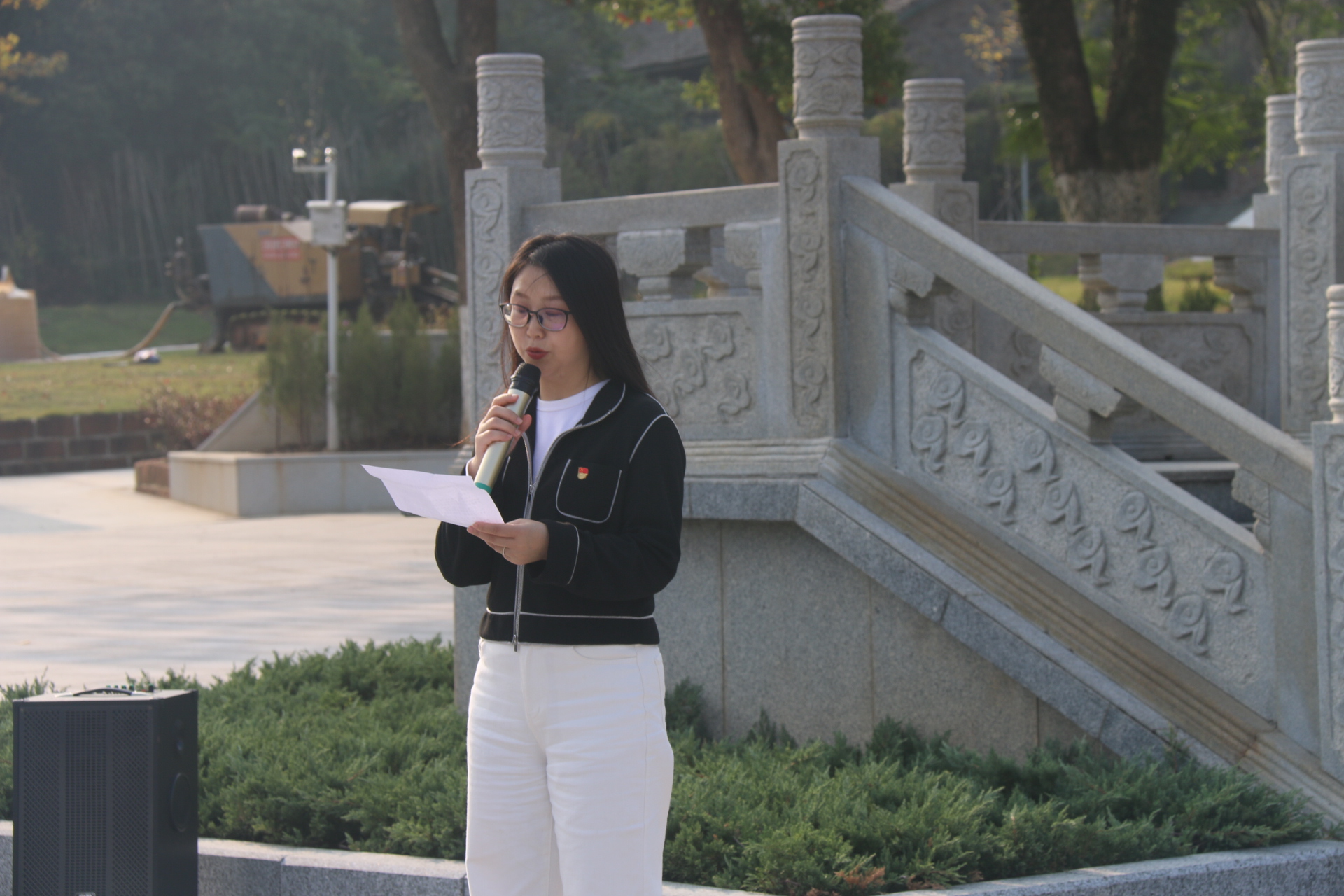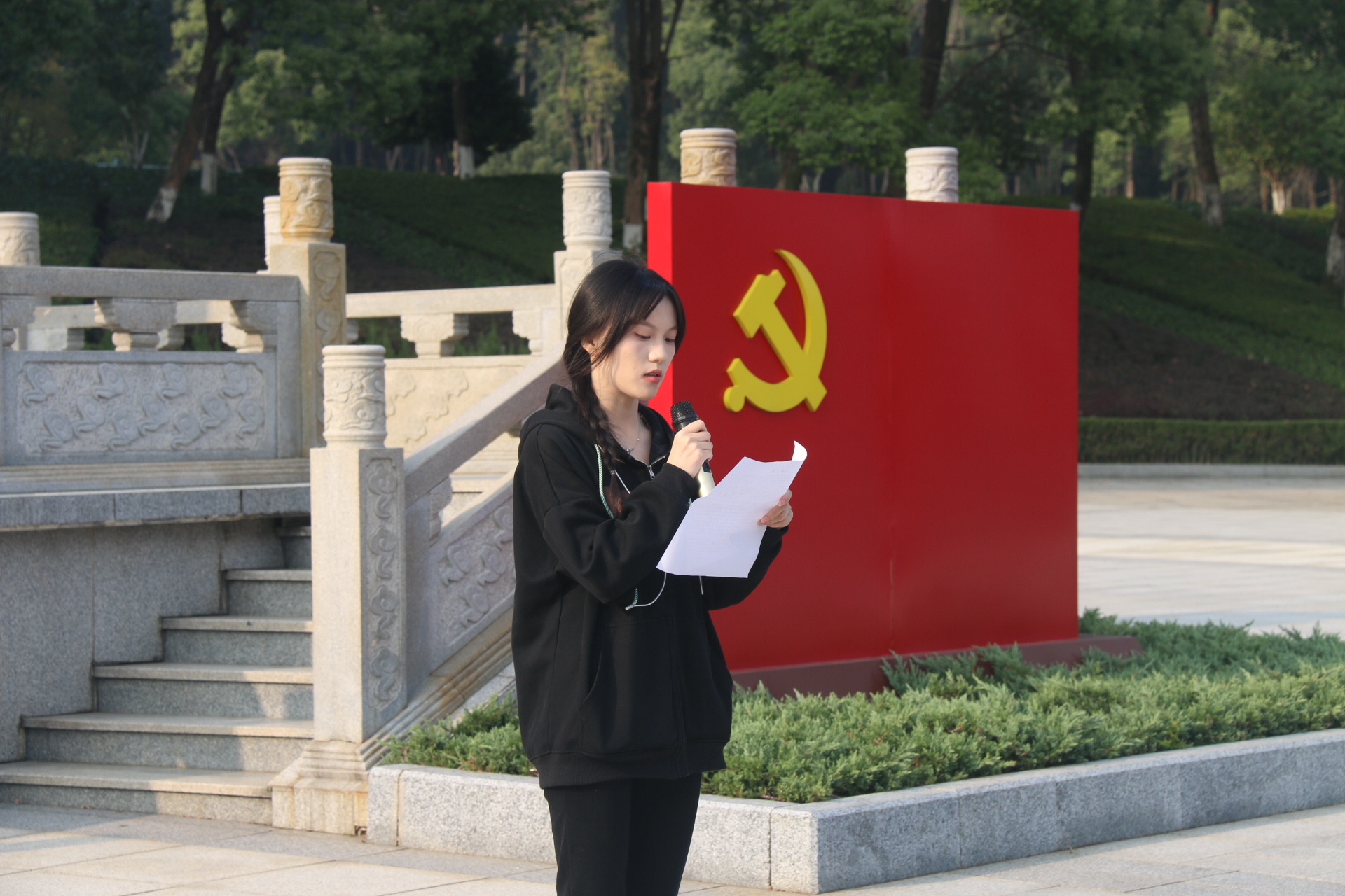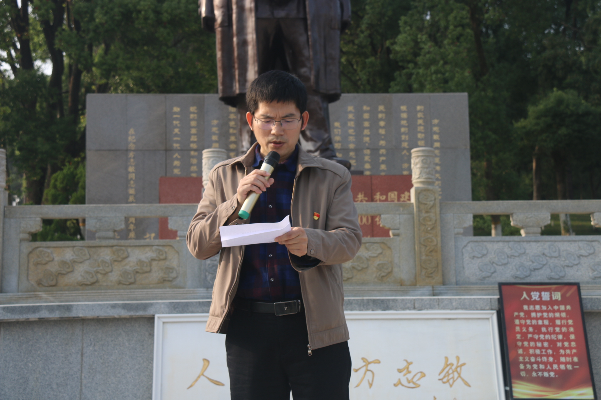 在方志敏烈士雕像前,学院党委副书记李雅琼发表了讲话。她号召师生们学习和传承方志敏烈士的坚定理想信念、顽强革命意志和高尚爱国情怀,不忘初心、牢记使命,为实现中华民族伟大复兴而努力奋斗,并希望全体党员和入党积极分子、发展对象接受深刻的党性教育和革命传统教育,始终保持共产党员的先进性和纯洁性。