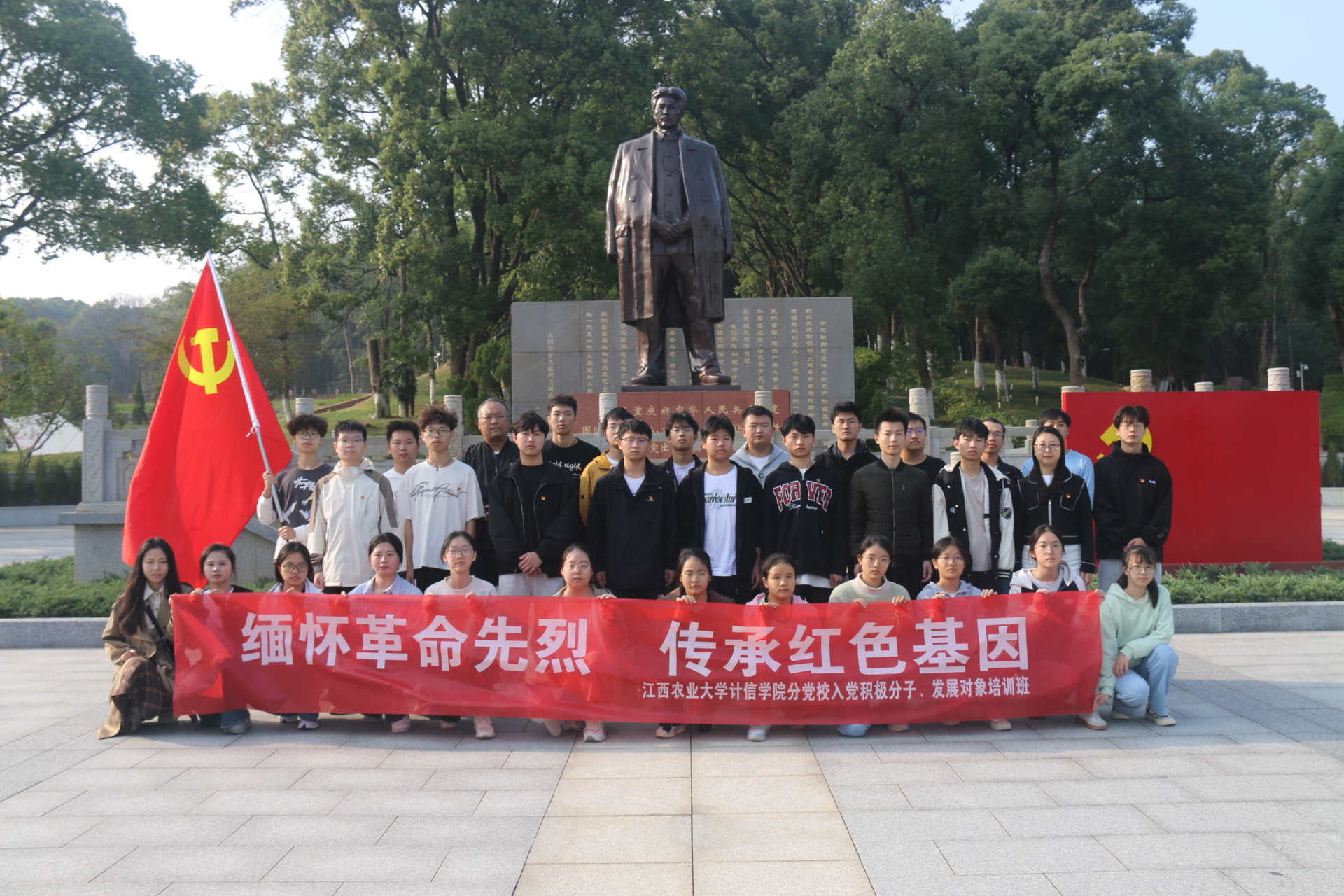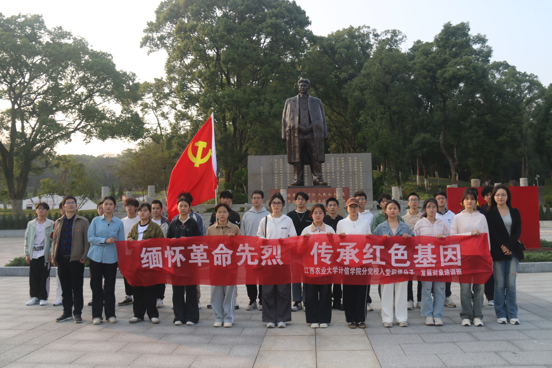 今年是方志敏同志的诞辰125周年,为缅怀革命先烈,传承红色基因,弘扬方志敏精神,加强大学生的理想信念教育,坚定不移听党话、感党恩、跟党走,11月5日下午,学院赴方志敏烈士陵园开展“歌咏党课”活动。学院各学生党支部书记、最新一批入党积极分子和发展对象近100人参加了此次活动。
