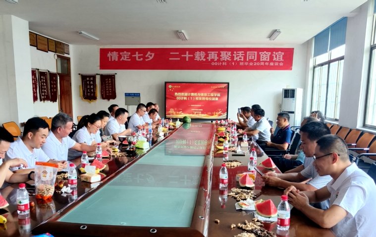 相别二十载,七夕再相聚。在8月10日七夕节,我院2000级计算机科学与技术(1)班校友从大江南北汇聚母校,举办毕业20周年联谊会,再叙师生之情、同窗之谊。原院党总支副书记左辉群、原院团委书记姜伟、班主任杨红云、 原班级辅导员王志发、院党委书记杨峰、副院长熊焕亮参加了本次活动。