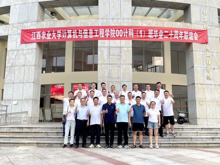 在返校期间,校友们开展了参观校园活动,大家回到曾经学习生活了4年的教室、寝室、图书馆等地,体会食堂的快乐、教室的严肃、寝室的舒心,重温大学的美好时光。聚会时,00计科(1)班校友们共同寄语母校:2004年7月, 我们踏上了人生的第一趟列车,带着对未来的无限遐想和憧憬奔向远方。感谢母校给了我们最青春的四年、最思念的四年、最回味的四年。风雨拼搏20年,我们一直牢记“江农人”的身份,一直不忘老师的教诲,一直用小我的点滴去诠释江农的“团结 勤奋 求实 创新”。 请母校放心,无论身处何地、从事什么工作,我们都将奋发努力、为母校增光添彩。
