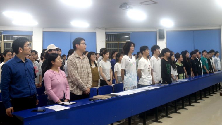 4月16日晚,在雄壮的国歌声中,我院2024年第一期入党积极分子与党员发展对象培训班开班仪式暨党纪学习教育部署会在院办三楼报告厅举行,学院党委书记杨峰出席会议并作开班讲话,学院党委副书记、院分党校校长李雅琼主持开班仪式,各学生党支部支委及全体入党积极分子与党员发展对象培训班学员共150余人参加。