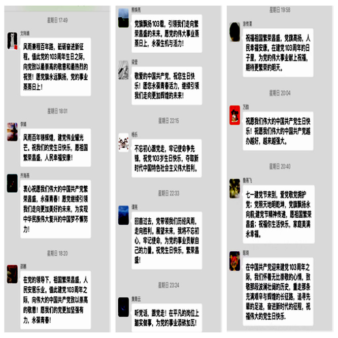 “不忘初心跟党走,牢记使命争先锋。”支部党员杨乐副教授在留言板上这样写到。在党的生日之时,支部开展了“我向党送祝福”留言活动。初心如磐,使命在肩,作为9918.5万之一,支部党员向党深情告白。党员们纷纷在留言板上写下对党的热爱与祝福,表达了作为一名党员的光荣与责任。